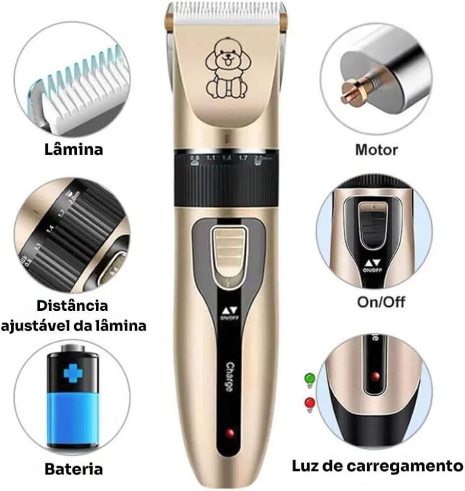 • Motor Silencioso: Alta velocidade com baixo ruído, ideal para animais sensíveis ou assustados.