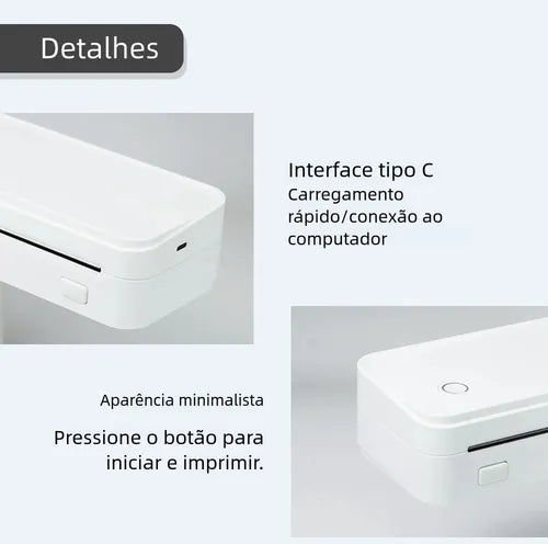 Conectividade Inteligente: Conecte seu iPhone, Android ou Tablet via Bluetooth (App: Nada Print). Para Laptops e PCs, utilize a conexão via cabo USB-C integrada.